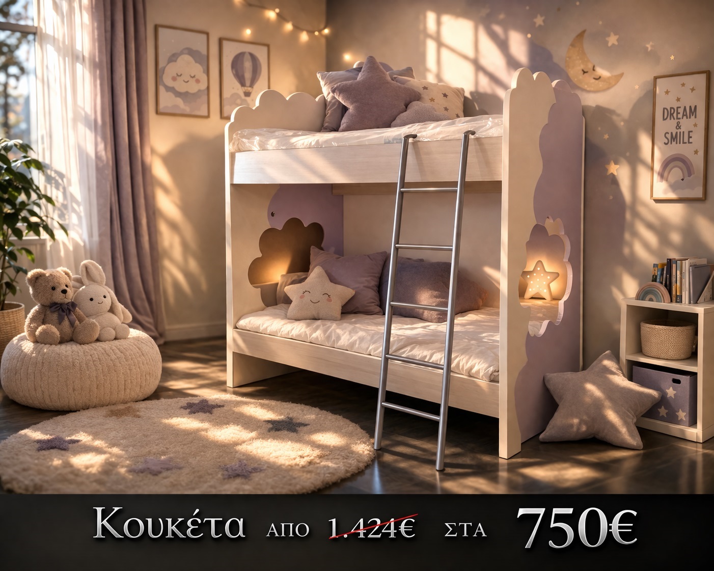Η παιδική κουκέτα μπορεί να κατασκευαστεί και σε διαφορετικούς χρωματισμούς κατόπιν επιλογής. Η προσφορά αφορά το εκθεσιακό κομμάτι όπως εμφανίζεται στη φωτογραφία, αποτελώντας μια εξαιρετική ευκαιρία για επώνυμο παιδικό έπιπλο σε μειωμένη τιμή.