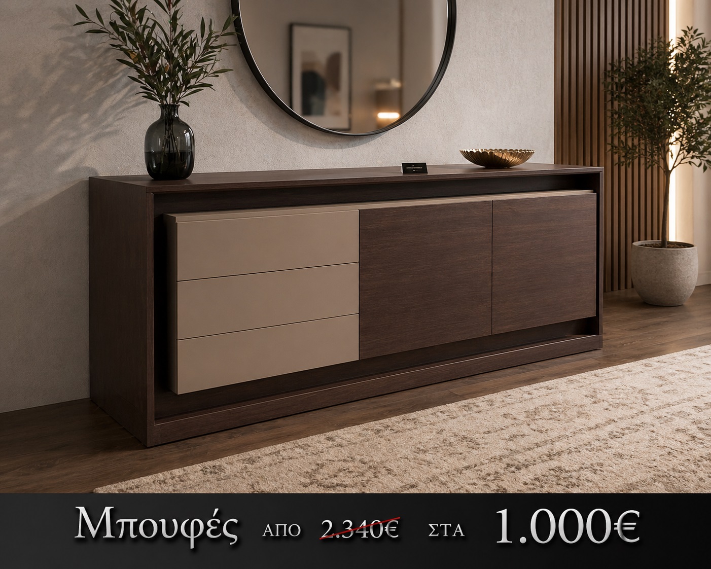 Η προσφορά αφορά το εκθεσιακό κομμάτι όπως παρουσιάζεται στη φωτογραφία, δίνοντάς σας τη δυνατότητα να αποκτήσετε έναν ποιοτικό design μπουφέ σε εξαιρετική τιμή.